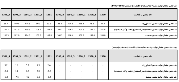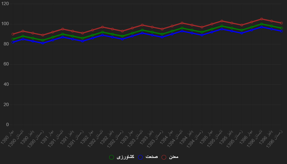 بر اساس دادههای خام، میانگین شاخص در بهار ۱۳۹۰ حدود ۸۵ (کشاورزی ۸۵.۲، صنعت ۸۲.۱، معدن ۸۸.۴) بود و در تابستان ۱۴۰۴ به ۱۳۲.۲ (کشاورزی ۱۳۲.۲، صنعت ۱۳۱.۹، معدن ۱۳۸.۱) رسیده، که رشد کلی ۶۷% را نشان میدهد. با این حال، با تورم تجمعی ۳۵۰% در دوره (از ۳۵% در ۱۳۹۰ به ۴۵.۳% در ۱۴۰۴)، رشد واقعی تنها ۱۲% است. آمارهای مرکز آمار ایران (تا تابستان ۱۴۰۴) تأیید میکنند که رشد فصلی متوسط کشاورزی ۲.۸%، صنعت ۴.۳%، و معدن ۵.۴% بوده، اما با افتهای شدید در فصول تحریم (۱۳۹۹–۱۴۰۱) و خشکسالی (۱۳۹۹).